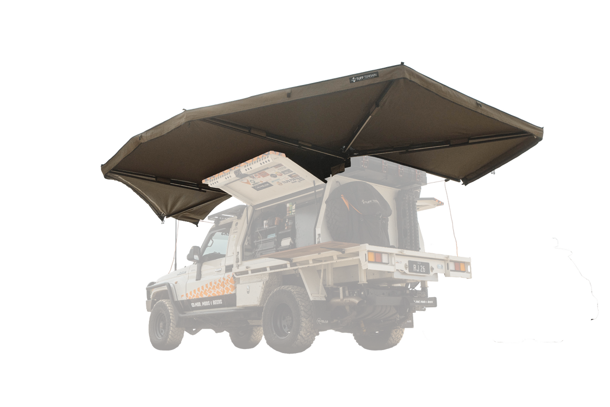 Get ready with the Tuff Terrain 270. This awning’s built tough for Aussie trips. It uses poly-cotton to block the sun. LEDs light up your camp area. You’ll find setup easy. Roof racks connect via included L-brackets. Water and UV protection last through journeys. Designed for outback and more. Gear up to make every trip count. Mate, it’s built to handle it all.