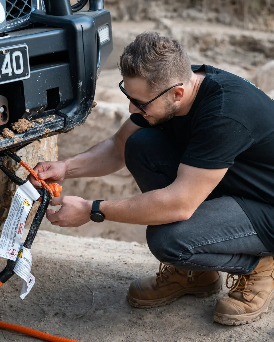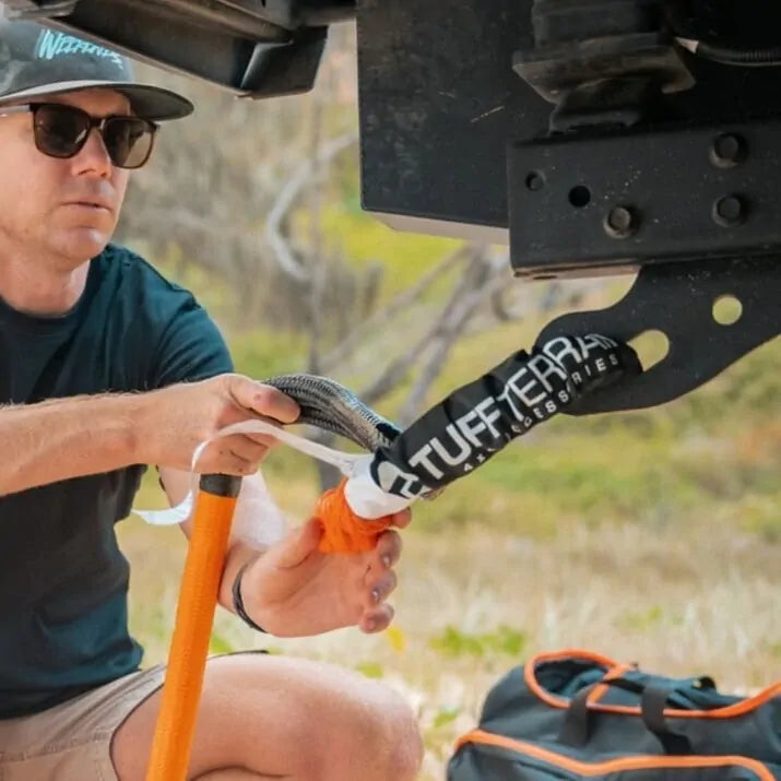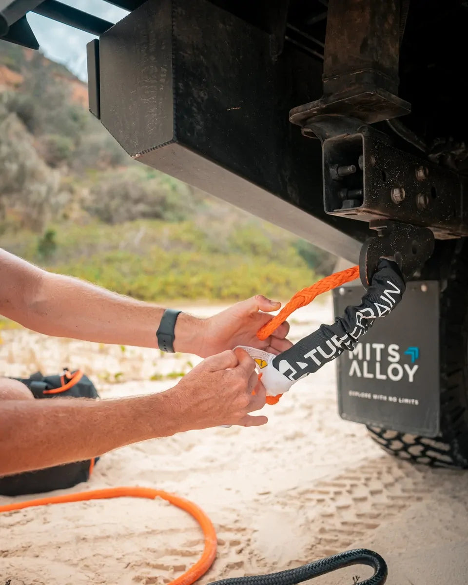Tuff Terrain 15T Soft Shackle with Braided Sheath hooks into standard recovery points to replace traditional steel shackles, which keeps your recovery setup light and simple when you get out there. The soft loop cinches tight under load around hitches or rated points, meaning the connection stays put as you tackle sand, mud, and rutted tracks from the bush to the beach. The braided sheath shields the main rope from sharp edges on metal gear and rocks.